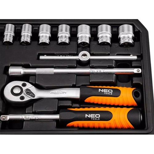 Všechny komponenty jsou vyrobeny z odolné CrV oceli a mají saténový povrch, což zajišťuje odolnost a pohodlí. Sada NEO TOOLS je navržena s ohledem na moderního uživatele – kompaktní velikost pouzdra je ideální pro uložení v zásuvce, autě nebo brašně na nářadí. Toto praktické nářadí je ideální pro každého – jak v domácí dílně, tak pro drobné opravy v terénu.