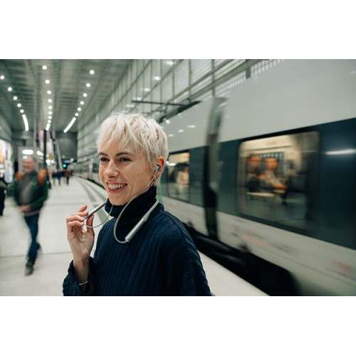 Ergonomický krční pásek udržuje sluchátka na místě a snadno přístupná. Pro větší praktičnost jsou magnetická sluchátka vybavena inteligentní funkcí automatického zapnutí/vypnutí. Když jsou sluchátka připojena k sobě, automaticky se vypnou, aby se šetřila výdrž baterie. Stačí je oddělit a okamžitě se zapnou, připravená k opětovnému připojení k vašemu zařízení. Opětovným připojením se znovu vypnou, což nabízí intuitivní ovládání bez nutnosti stisknutí jakýchkoli tlačítek.