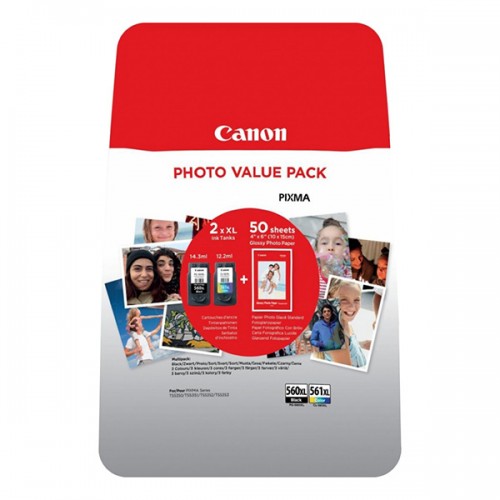 Canon originální ink PG-560XL/CL-561XL multipack + PP-201 10x15cm 50I, black/color, blistr, black 400/color 300str., black 14.3/co